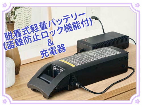 バッテリーは脱着可能なため、屋内の家庭用コンセントに挿すだけで