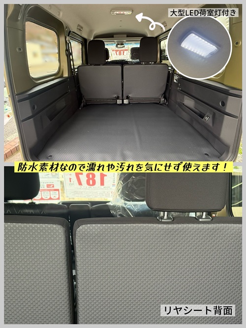 ラゲージルームの床面、リヤシートの背面は防水素材になってます