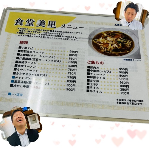 「特製美里ラーメン」「麻婆ラーメン」「中華そば+ミニチャーハンセット」